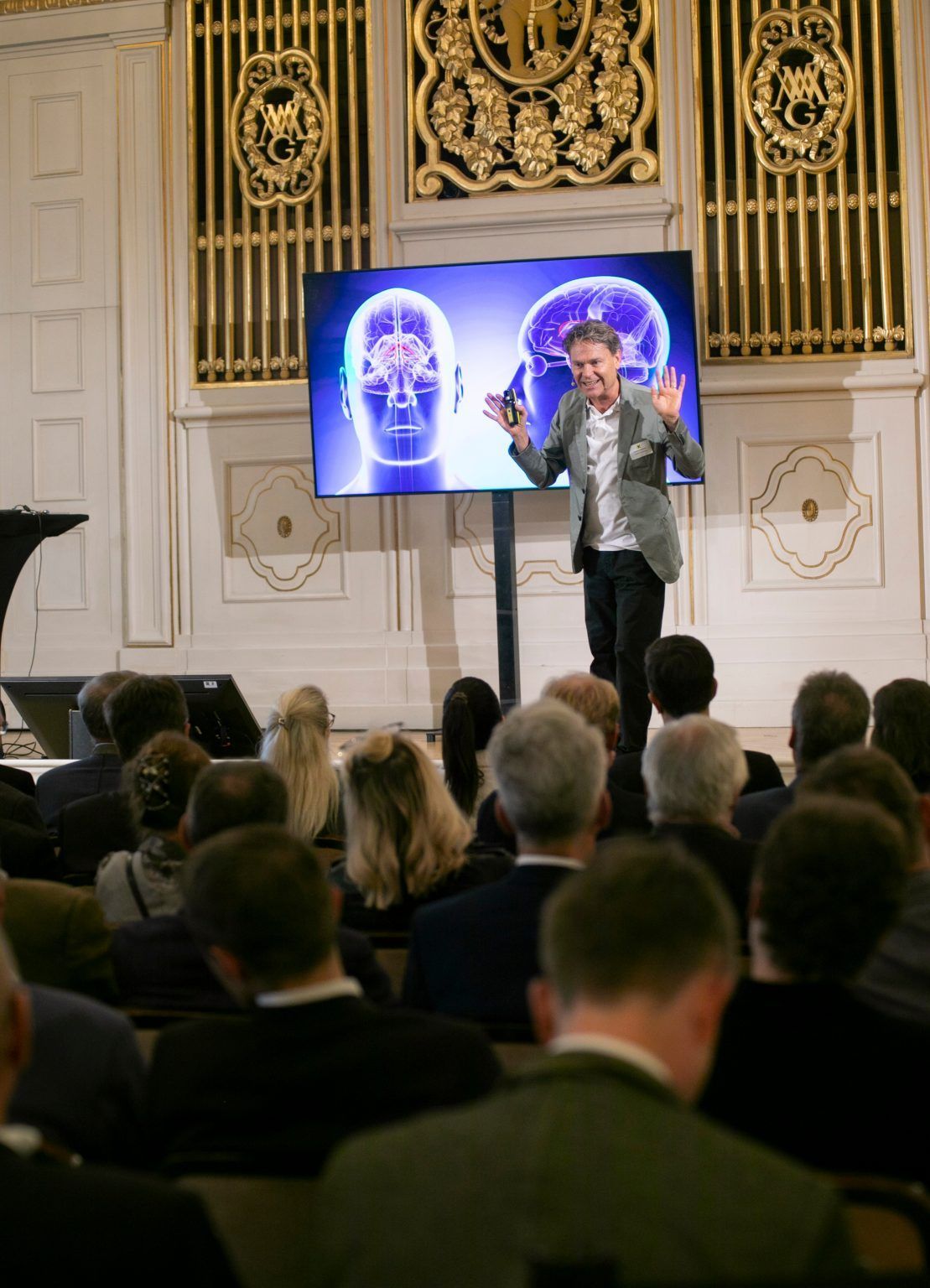 Daher standen Neurodidakitk, das menschliche Gehirn und seine Fähigkeiten, zur Premiere der KnowledgeLounge im Mittelpunkt. Im Rahmen seines lebendigen Vortrags erzählte dabei Dr. Hannes Horngacher wie gehirngerechtes Lernen und Lehren funktionieren und welche Cocktails in Form von Dopamin, Serotonin & Co notwendig sind, um erfolgreich Wissen aufzunehmen.